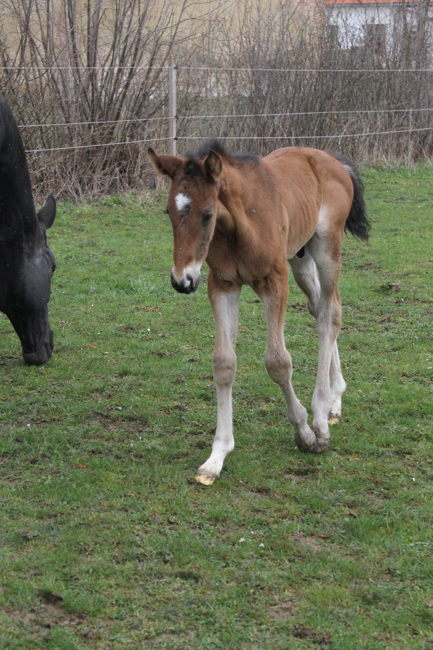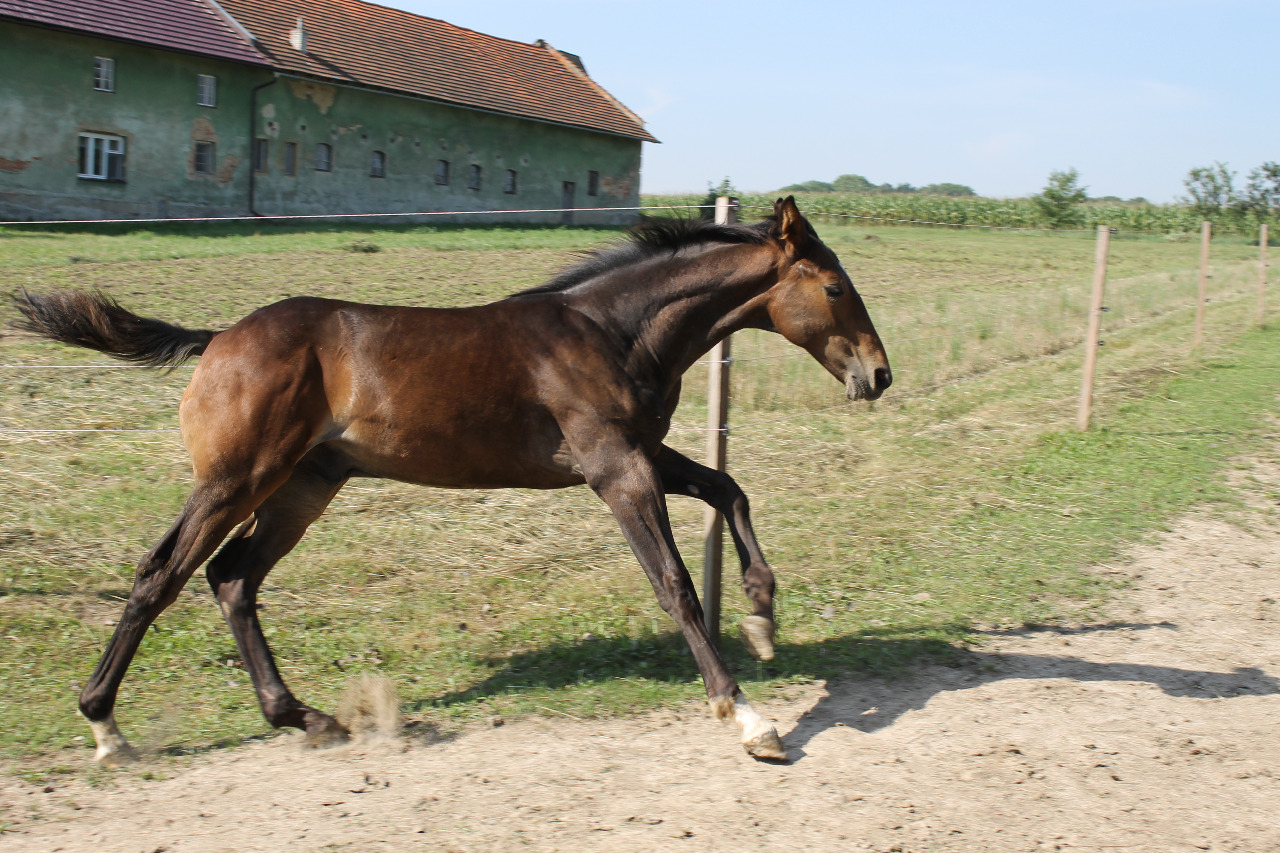 Floriánkovi říkáme Flory. Má hvězdičku na čele a dvě ponožky po spěnky s bílými kopýtky. v KVH má cca 155cm skoro ve dvouletech. :)